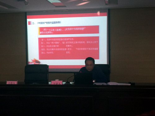 講座的內(nèi)容立足全面從嚴治黨,堅持將紀律挺在前面的要求,圍繞黨的紀律特別是政治紀律,對《中國共產(chǎn)黨廉潔自律準則》、《中國共產(chǎn)黨紀律處分條例》以及《中國共產(chǎn)黨黨內(nèi)監(jiān)督條例》進行了解讀和分析,內(nèi)容充實、條理清晰、重點突出。講座圍繞黨員、干部在工作生活中容易觸碰的“雷區(qū)”,還列舉了“禮尚往來不能這樣來”,“6類飯局不能去”、 “如何操辦紅白喜事””等具體問題的表現(xiàn)形態(tài),結合市紀委近年來查處的一些黨員違法違規(guī)的案件,提醒廣大干部員工要防微杜漸,時刻保持清醒的頭腦,不能觸碰紀律紅線。