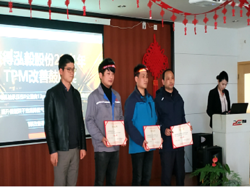 經(jīng)評選,大連嘉翔“智能制造——油壓機自動上下料單元”改善、蕪湖普威“降低車身件焊點毛刺”改善、博耐爾“提升M1A冷凝器外觀一次出爐合格率”改善分別榮獲一二三等獎。杰諾瑞“發(fā)電機軸承壓傷0公里由13ppm降低至0ppm”改善、泓鵠材料“提升模型烘干效果降低氣孔發(fā)生率”改善和金安世騰“安全帶拉脫”改善獲得鼓勵獎。大連嘉翔張毅榮獲泓毅股份“2021年度TPM推行優(yōu)秀管理者”稱號,杰諾瑞榮獲泓毅股份“2021年度TPM推行管理A級單位”稱號。隨后,對獲獎者/獲獎單位舉行了隆重的頒獎儀式,并邀請獲獎代表上臺發(fā)言。