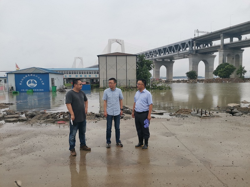沿著長江防洪大堤,方曉同志一邊檢查一邊聽取項目施工單位防汛工作匯報。目前,施工單位中鐵大橋局項目人員已有序撤離危險區(qū)域、工程資料已經(jīng)妥善安置,并與屬地政府、所在街道組成防汛值班隊伍,安排人員24小時現(xiàn)場值班,并組建了一支50人的突擊分隊隨時應對突發(fā)險情。
