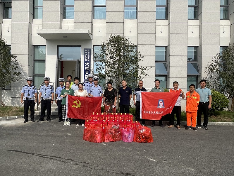 為表達(dá)對辛苦執(zhí)勤的一線交警及道路管養(yǎng)人員的敬意和慰問,7月18日下午,蕪湖長江大橋投資建設(shè)有限公司開展了共建慰問送清涼活動(dòng),公司為一線交警及城建集團(tuán)道路管養(yǎng)人員送上了清涼的飲用水、防曬用品等物資。