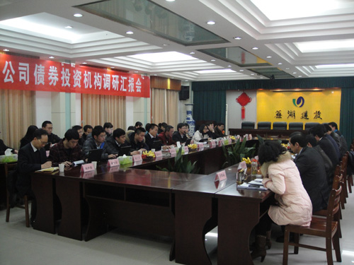 3月16日,公司邀請全國證券、基金、保險、銀行等23家金融機構(gòu)對我市和公司進行了實地調(diào)研。市政府副秘書長張東出席了調(diào)研座談會。市發(fā)改委和公司負責同志分別向機構(gòu)投資者介紹了蕪湖市經(jīng)濟社會發(fā)展情況和“十二五”發(fā)展規(guī)劃、蕪湖建投發(fā)展歷程及投融資情況,并就機構(gòu)投資者關(guān)心的問題一一作出解答。