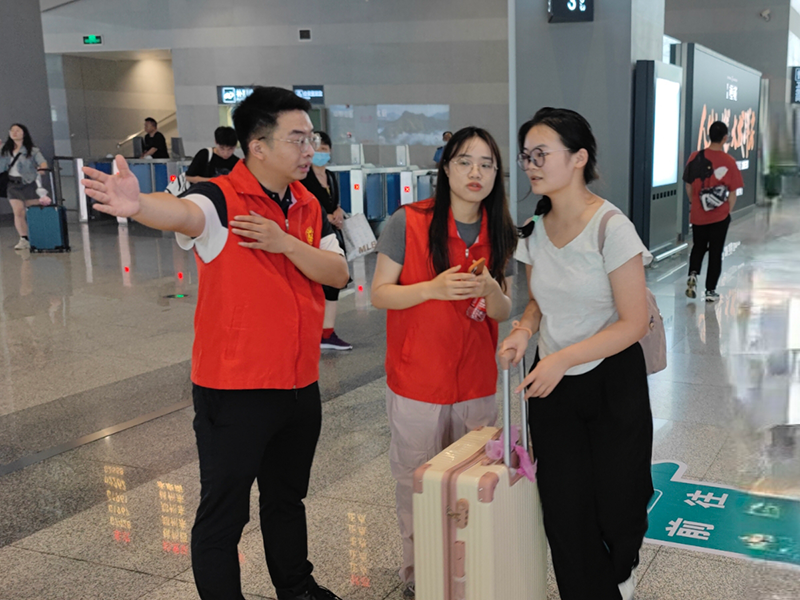 端午節(jié)將近,火車(chē)站內(nèi)來(lái)往乘客絡(luò)繹不絕,黨員同志們堅(jiān)守著各自的崗位為乘客們提供志愿者服務(wù):面對(duì)不知路線的乘客,他們親切地詢問(wèn)并指引;遇到尋找購(gòu)票窗口的乘客,他們熱情地為其引導(dǎo);看見(jiàn)行李繁多的乘客,他們主動(dòng)地上前分擔(dān)……
